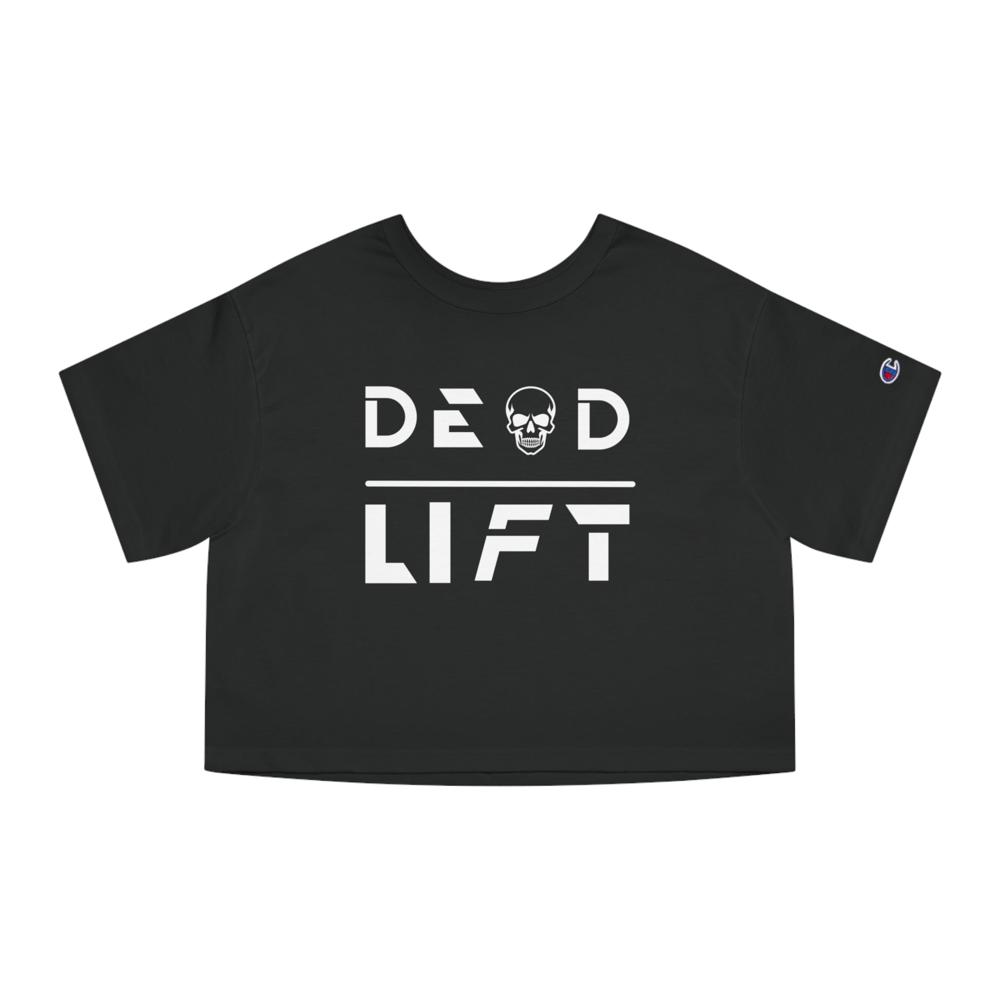 A Champion Women's Heritage Cropped T-Shirt designed for deadlift, workout, weightlifting, powerlifting, and exercise enthusiasts. This modern cropped fit tee gives off a strong and determined vibe, perfect for intense gym sessions. Ideal for female fitness enthusiasts and athletes looking for a durable and comfortable shirt for their workouts. Relevant for gym-goers, weightlifters, and fitness lovers.